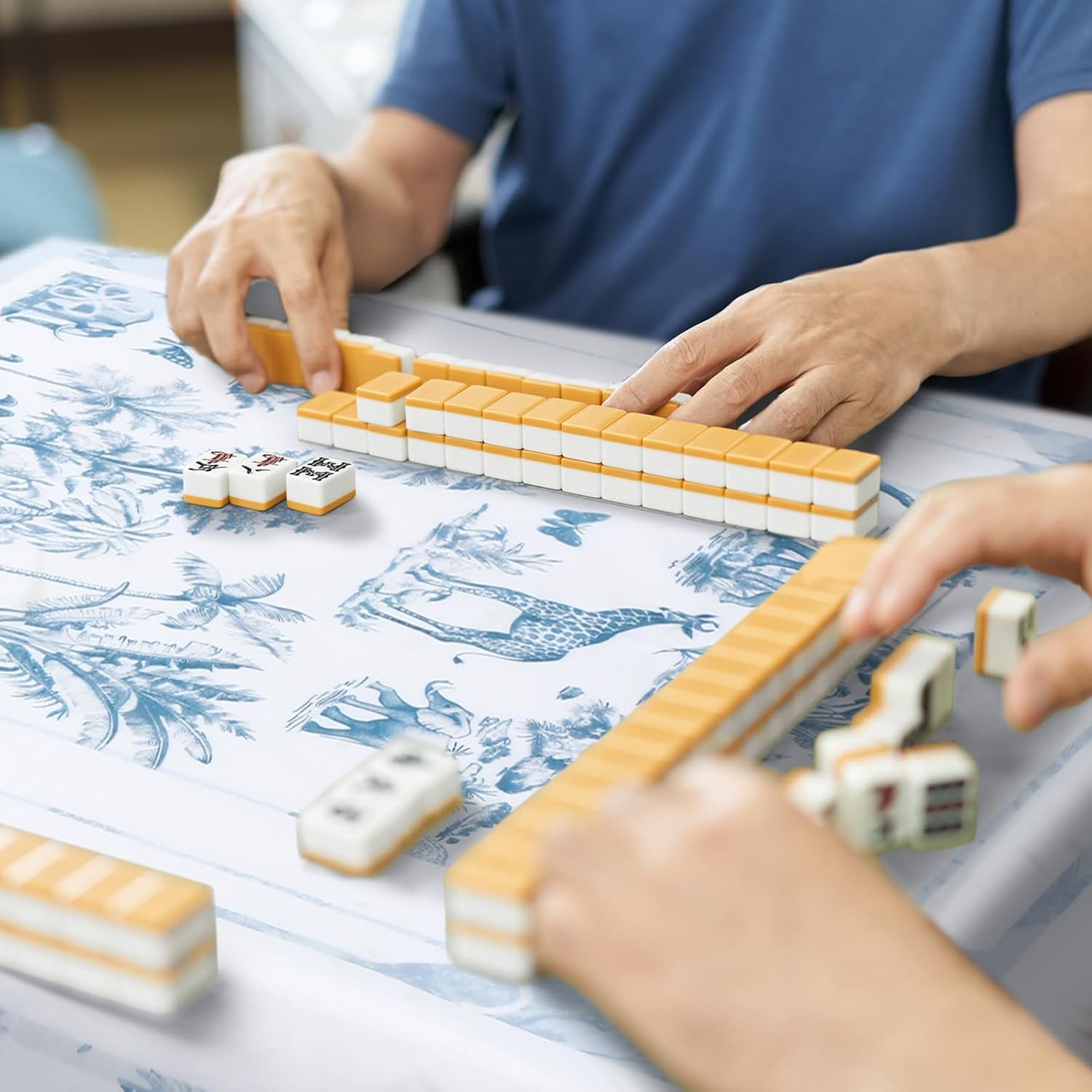 Features: This mahjong set is not only suitable for family entertainment but also for carrying during travel. Whether you are spending happy times with family and friends at home or sharing the joy of games with companions on the go, this mahjong set is your ideal choice. The zipper design protects the mahjong from falling out easily. Specifications: Material: polyester Color: blue and white Size: Mahjong tablecloth: 56 x 56 inches Mahjong bags: 13 x 7.5 x 3.2 inches Package includes: 1 x Mahjong tablecloth 1 x Mahjong bag Notes: Manual measurement, please allow slight errors on size. The color may exist a slight difference due to different screen displays